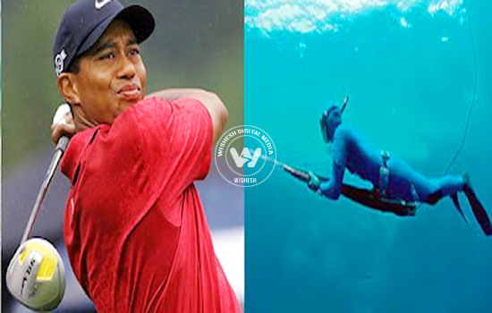 Golfing and women, that's not all he does. When not golfing or amorously swinging in some woman's arms, Tiger Wood loves to spend his time spear fishing.