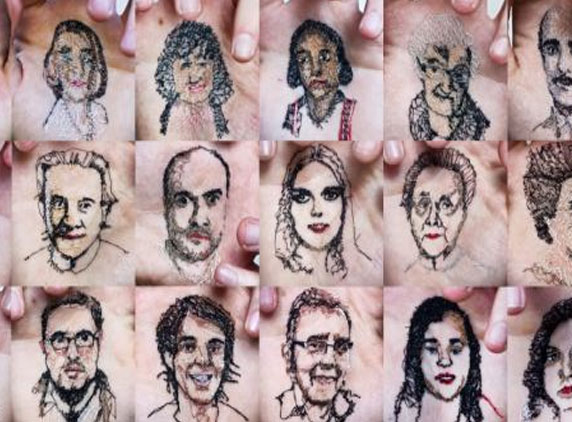 'By sewing into the palm of my hand I paint the faces of the people that have left their mark on my life: family, friends, partners, teachers.