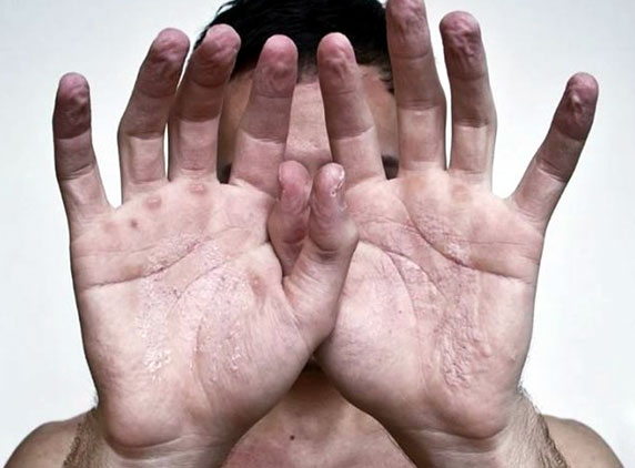 And remarkably, an outline of each face is still visible in the picked flesh of his hand - but there is very little blood.