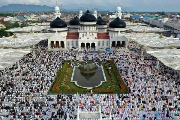 To celebrate Eid al-Fitr, Muslims attend morning prayers marking the end of the holy fasting month of Ramadan, at Baiturrahman Grand Mosque in Banda Aceh, Indonesia.