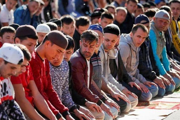 Muslims attend the morning prayers of Eid al-Fitr in Moscow, Russia.