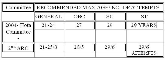 The Second Administrative Reforms Commission (ARC) has recommended lowering of age limit along with the reduced number of attempts.