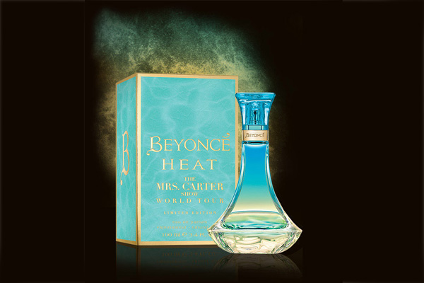 The seductive Heat – The Mrs. Carter Show World Tour, a blend of florals, vanilla, sandalwood and acai, comes in a turquoise glass bottle and captures the "power, passion and playfulness" of Knowles` show.